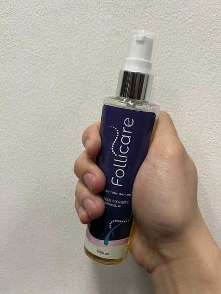 Karena penasaran, saya memutuskan bertanya berapa biaya operasinya. Tapi dia berkata dia tidak operasi. Meskipun sempat mempertimbangkannya, tapi kemudian dia sadar kalau prosedur itu sangat berbahaya karena dapat menyebabkan kontraindikasi hingga kematian. Rekan kerjanya menyarankan dia membeli satu produk penumbuh rambut, yang disebut Follicare. Dia mengaku kalau dirinya hanya butuh 2 minggu untuk menumbuhkan rambut setebal miliknya dengan produk ini. Saya kaget dan tertarik mencoba. Teman saya itu kemudian memberitahu link untuk memesan Follicare di situs resmi produsen.